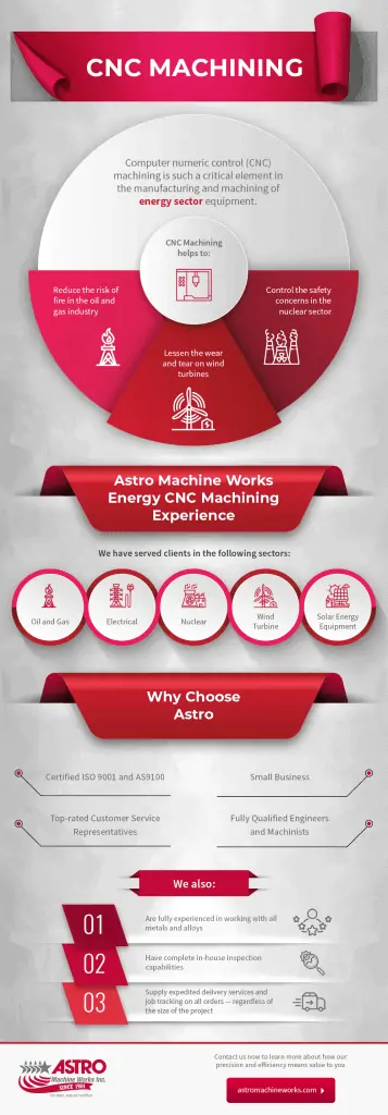 If your business prides itself on being a reliable part of the energy sector, the smartest decision you can make is to let Astro Machine Works be your number-one choice for all your machining needs. We know our ongoing success is fully reliant on meeting the expectations of our clients. Contact us now to learn more about how our precision and efficiency means value to you.