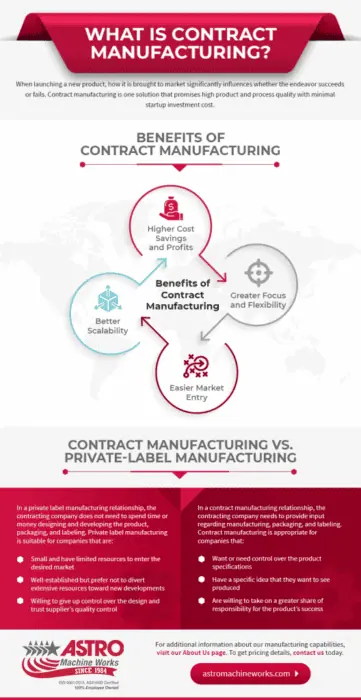For companies who need help bringing a product concept to life, contract manufacturing is an ideal solution. It enables them to reduce investment costs without sacrificing product quality. If you are searching for a contract manufacturer for your next project, turn to the experts at Astro Machine Works.